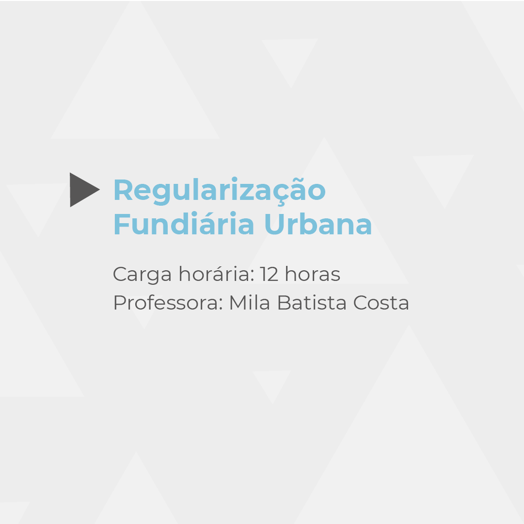 Ementa: abordar os tipos de irregularidades urbanas e a aplicação do conceito de regularização fundiária plena. A Lei nº 13.465, de 2017, que versa sobre a regularização fundiária urbana, relaciona um rol de procedimentos e instrumentos para integrar os assentamentos ao mundo jurídico, por meio do registro imobiliário dos títulos gerados; à cidade, por meio da implantação da infraestrutura necessária e prestação de serviços públicos; contemplando ainda mecanismos de geração de renda para garantir a permanência da população beneficiária.
