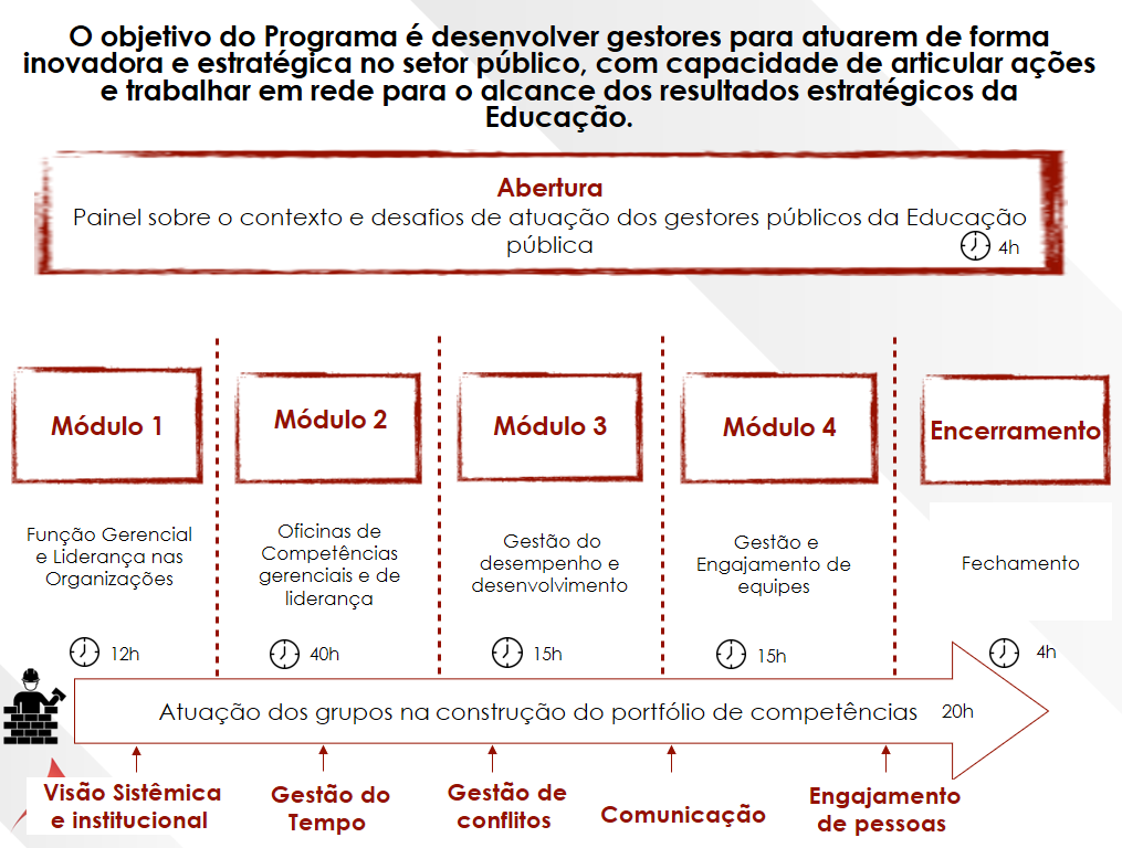 - Desenvolver nos gestores da Secretaria de Educação competências gerenciais e de liderança necessárias para uma atuação estratégica, inovadora e flexível no setor público.